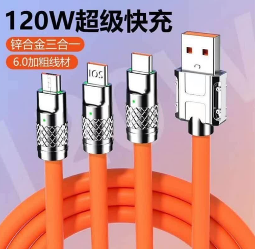 کابل شارژ سیلیکونی سه کاره 120 وات 6 امپر