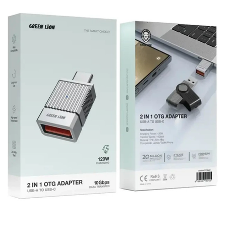 مبدل OTG گرین لاین ۲ در ۱ توان ۱۲۰ وات مدل Green Lion 2 in 1 OTG Adapter 120W 10Gbps