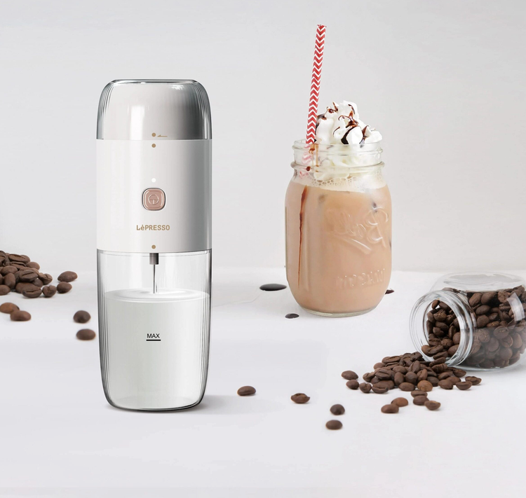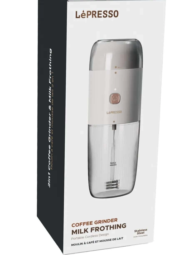 دستگاه دوکاره فوم ساز شیر و آسیاب قهوه لپرسو LePresso LPMFGRWH 2IN1 portable milk frother