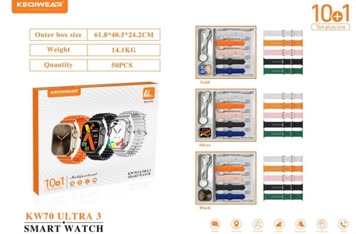 ساعت هوشمند اپل KW70 Ultra 3 با ۱۰ بند سیلیکونی ضد آب
