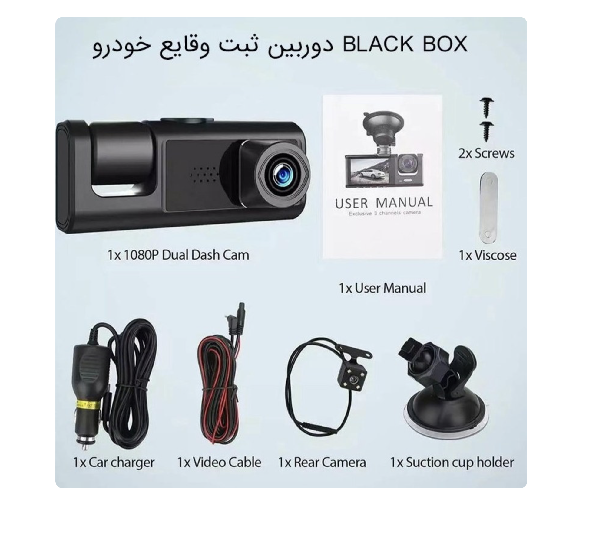 ناموجوددوربین ثبت وقایع خودرو بلک باکس مدل C309 سه لنز با کیفیت فول اچ دی